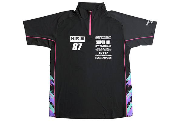 - Gear up with the HKS TEAM WEAR half-zip polo shirt, designed for HKS motorsports teams. Made from quick-drying, breathable fabric, it ensures comfort during any activity. The shirt features stylish HKS oil color designs on the sides with sporty pink accents.