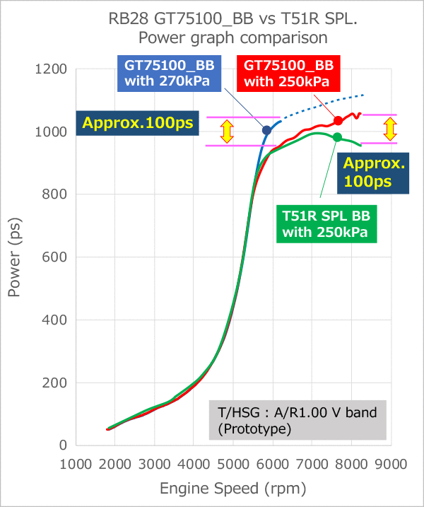 Aimed at 1000ps. with the same spool-up as the T51R SPL.BB with boost keeping at high rpm.