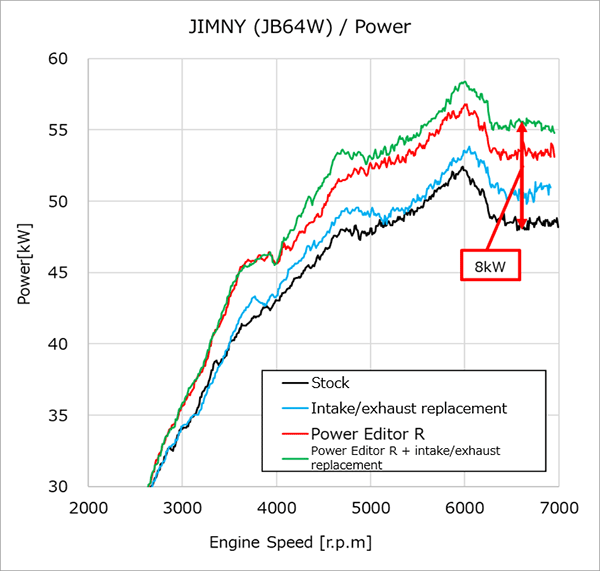 With the installation of the Power Editor R, power and torque are significantly increased across the entire RPM range.