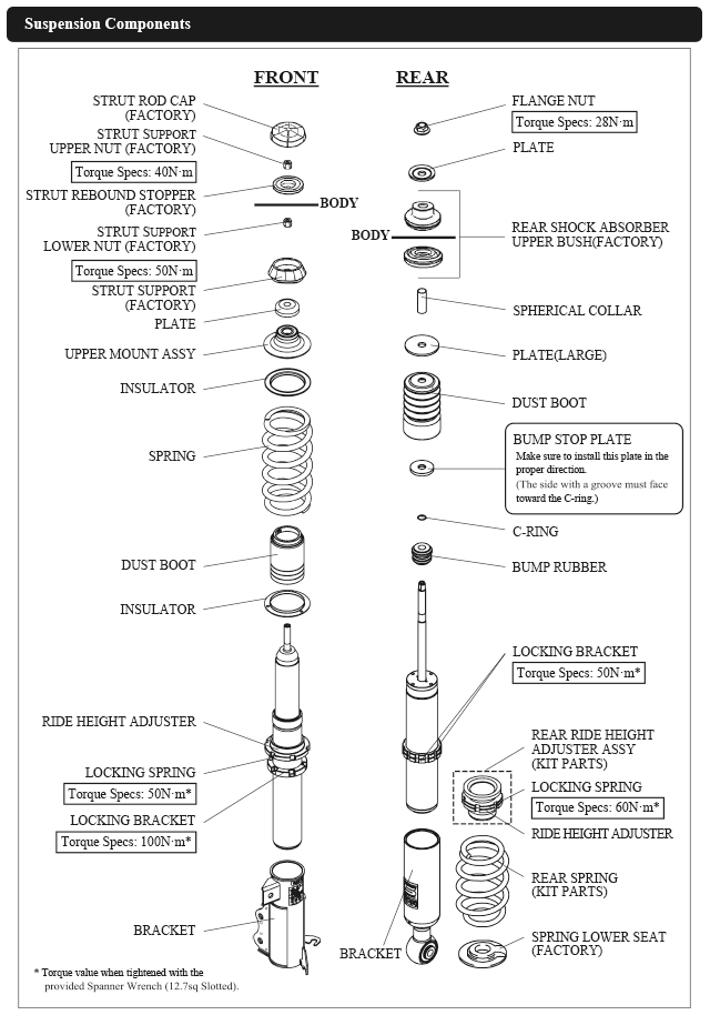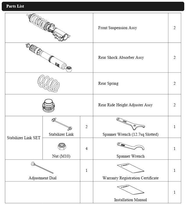 なお、出荷時車高から極端に車高を下げて使用することによるダンパーオイル漏れ等の不具合に関しても保証対象外となりますので、御注意ください。)