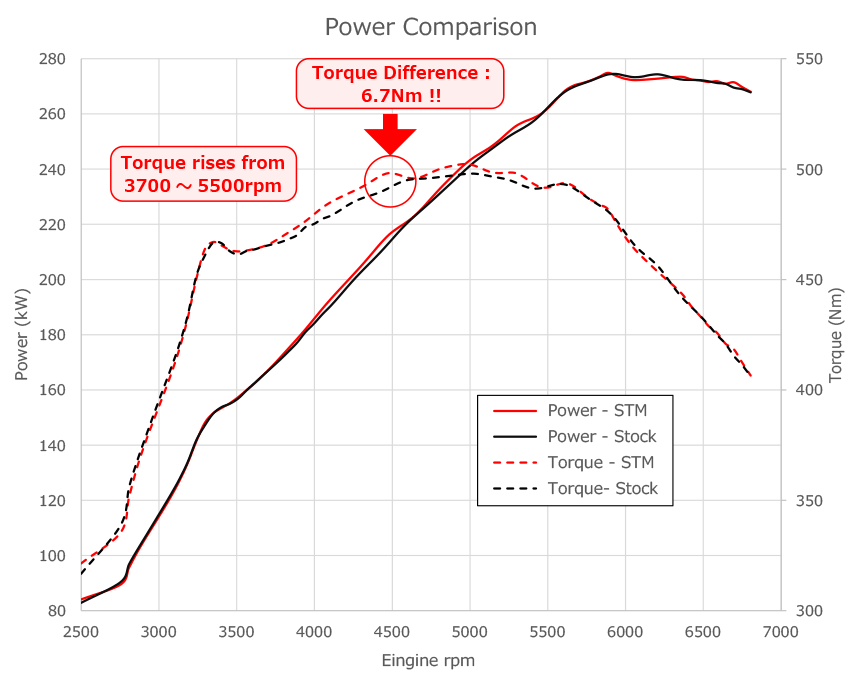 ※The change in output with this product installed is based on stock ECU control values.