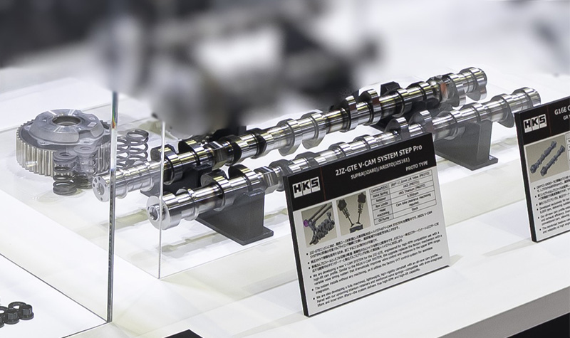 - 2JZ-GTEエンジンに向け、競技ユースを前提とした高回転対応+ハイリフトの「V-CAM SYSTEM」を開発中です。RB26 V-CAM SYSTEMと同様の可変バルブタイミング機構に交換し、高回転域での追従性を向上させます。