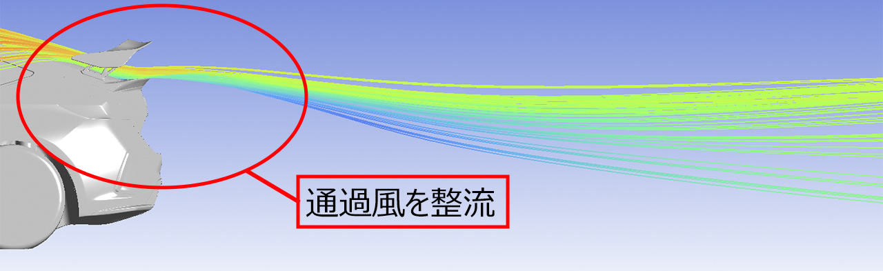 車体上面から車両後方に流れる空気をスムーズに流すことでドラッグの低減。 - 直進安定性の向上