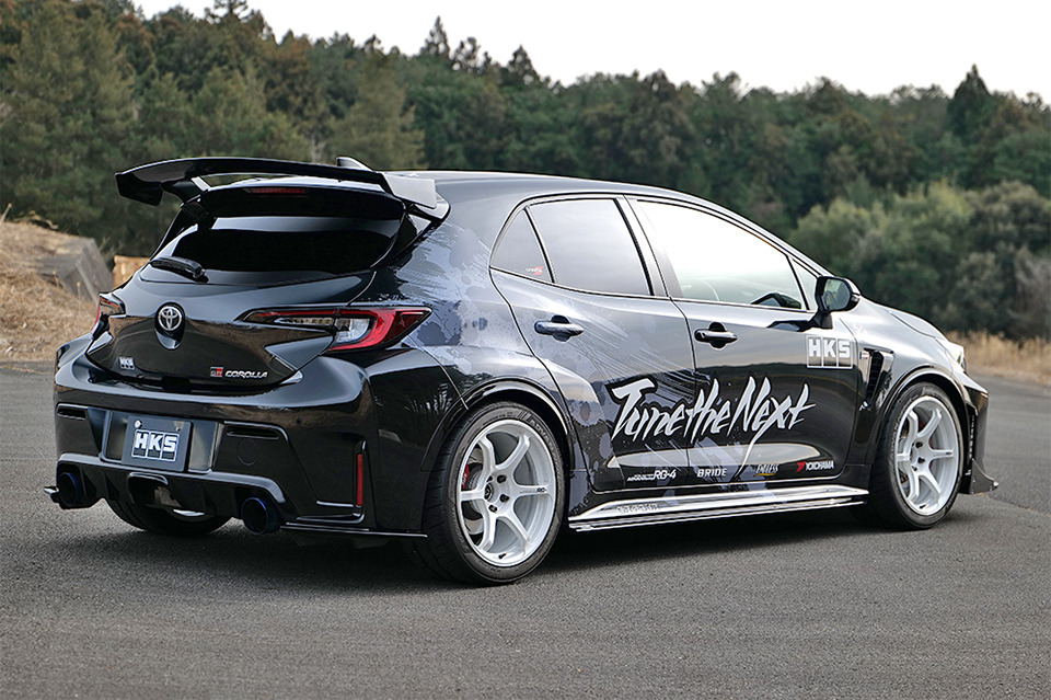 - HKS歴代タイムアタックマシンの顔つきを受け継ぎ力強い印象をGRカローラに与えます。