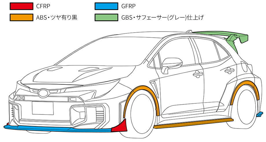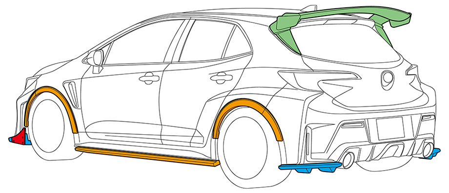 GRカローラ GEN2の走りを引き立てる機能美重視のボディキット