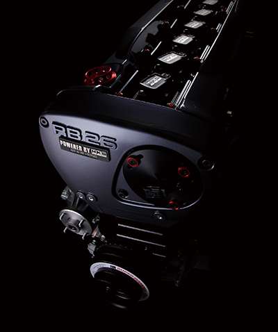 RB26DETT用 2.8 L HIGH RESPONSE KITを使って更なるレスポンスの向上を図るため、クランク角センサーと点火コイルまでパッケージにしたエンジンです。