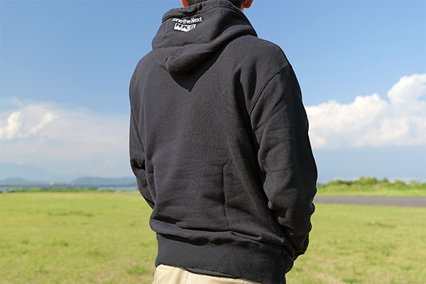 フードにはHKSのスローガン「Tune the Next」を配置。ロゴが映える、引き締まったイメージのブラック。