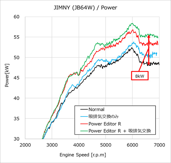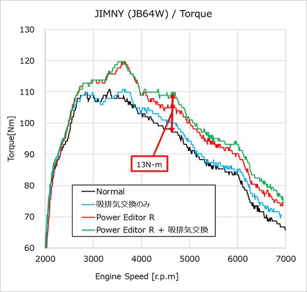 「Power Editor R」の装着によって、全域でパワー・トルクが大きくアップいたします。
