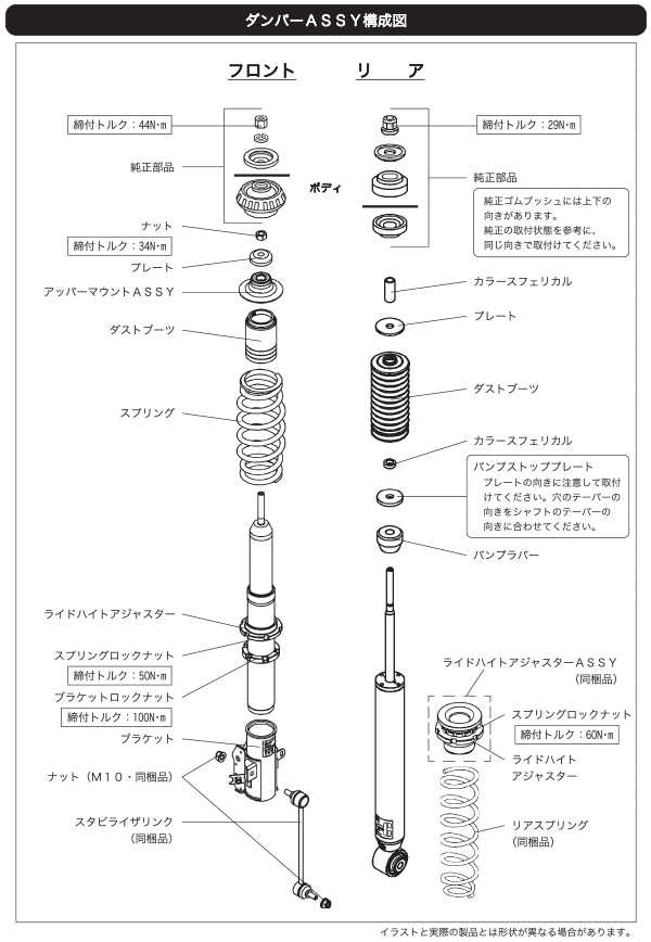 なお、出荷時車高から極端に車高を下げて使用することによるダンパーオイル漏れ等の不具合に関しても保証対象外となりますので、御注意ください。)