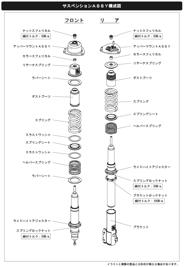 なお、出荷時車高から極端に車高を下げて使用することによるダンパーオイル漏れ等の不具合に関しても保証対象外となりますので、御注意ください。)