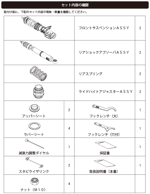 なお、出荷時車高から極端に車高を下げて使用することによるダンパーオイル漏れ等の不具合に関しても保証対象外となりますので、御注意ください。)