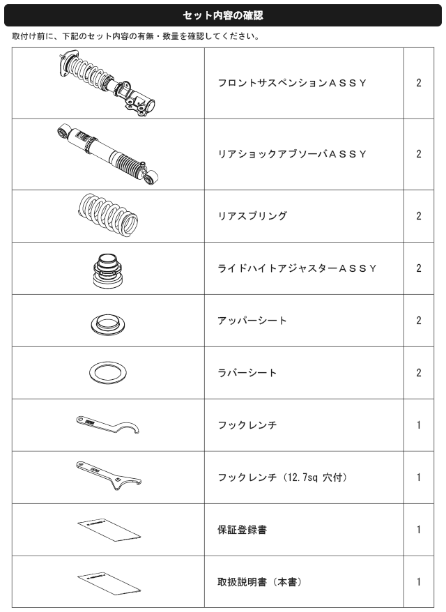 なお、出荷時車高から極端に車高を下げて使用することによるダンパーオイル漏れ等の不具合に関しても保証対象外となりますので、御注意ください。)