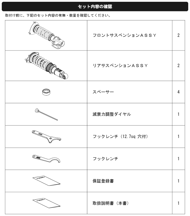 なお、出荷時車高から極端に車高を下げて使用することによるダンパーオイル漏れ等の不具合に関しても保証対象外となりますので、御注意ください。)