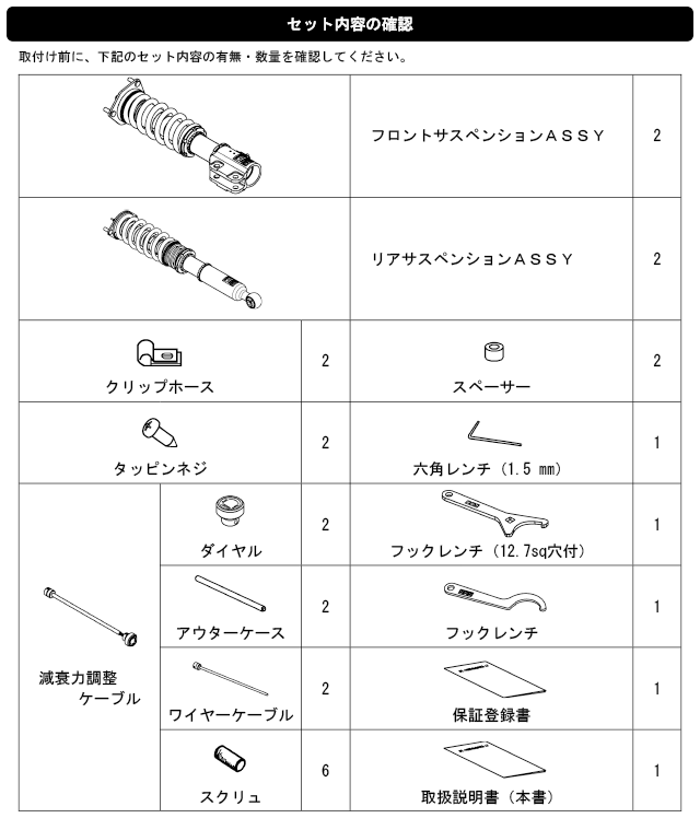 なお、出荷時車高から極端に車高を下げて使用することによるダンパーオイル漏れ等の不具合に関しても保証対象外となりますので、御注意ください。)