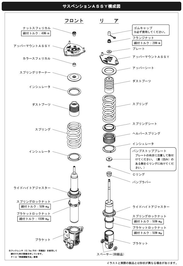 ・車高は可能な限りローダウンしての出荷です。エンジンアンダーカバー・フロントパイプ・リアマフラーが低い設定となっています。取付後地上高が90mm以上あることをご確認いただき必要に応じて調整をお願いいたします。