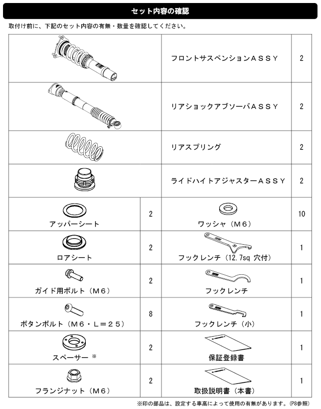 なお、出荷時車高から極端に車高を下げて使用することによるダンパーオイル漏れ等の不具合に関しても保証対象外となりますので、御注意ください。)