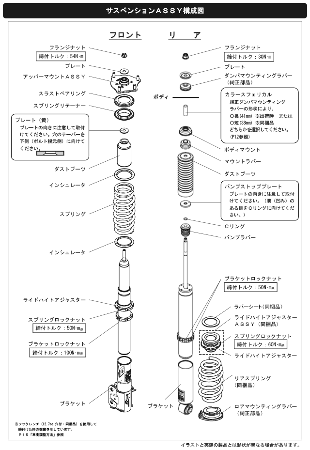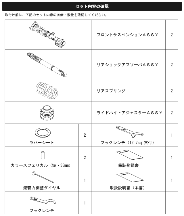 なお、出荷時車高から極端に車高を下げて使用することによるダンパーオイル漏れ等の不具合に関しても保証対象外となりますので、御注意ください。)