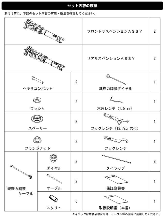 なお、出荷時車高から極端に車高を下げて使用することによるダンパーオイル漏れ等の不具合に関しても保証対象外となりますので、御注意ください。)