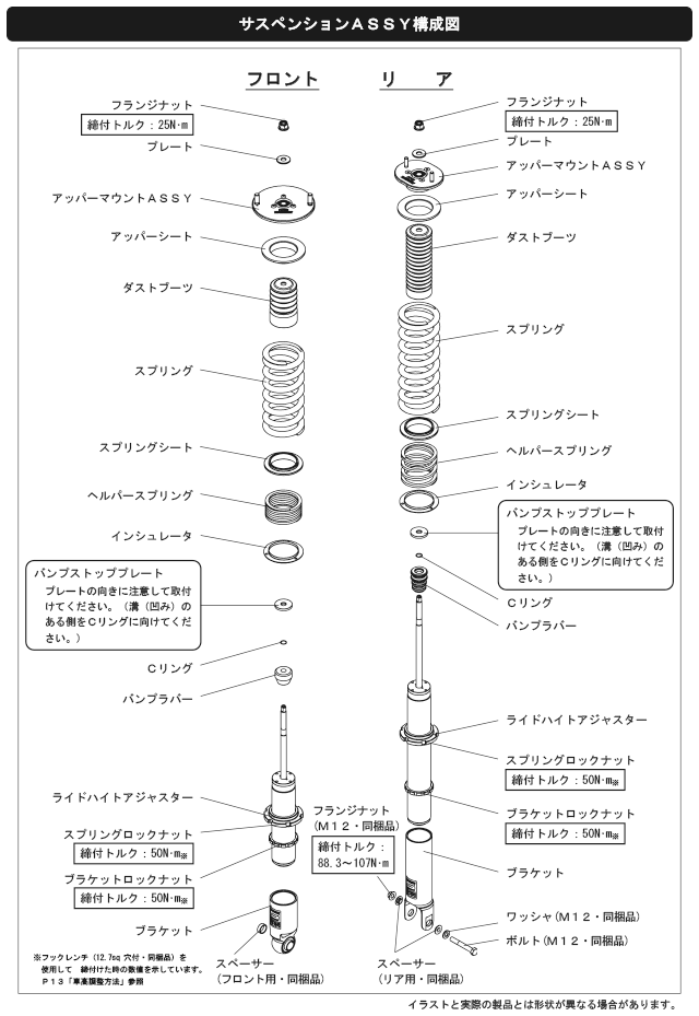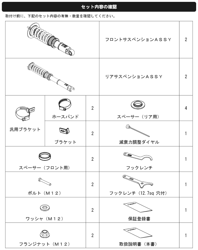 なお、出荷時車高から極端に車高を下げて使用することによるダンパーオイル漏れ等の不具合に関しても保証対象外となりますので、御注意ください。)