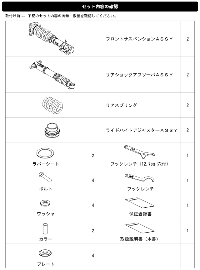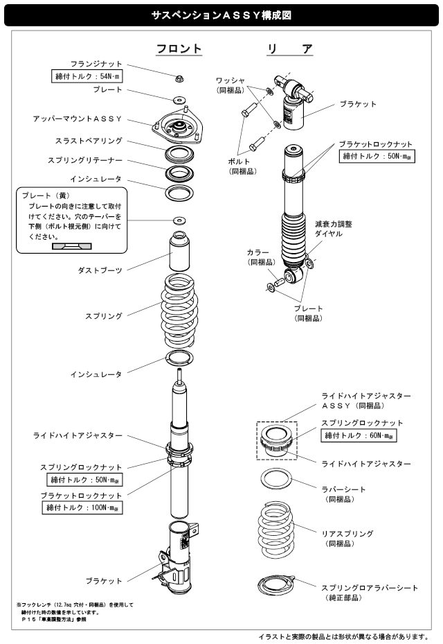 なお、出荷時車高から極端に車高を下げて使用することによるダンパーオイル漏れ等の不具合に関しても保証対象外となりますので、御注意ください。)