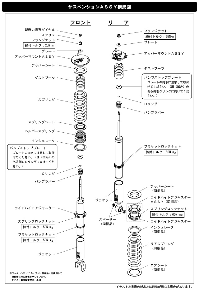 | スプリングレート変更時推奨範囲N/mm(kgf/mm) | - | -20 ( 2 ) |