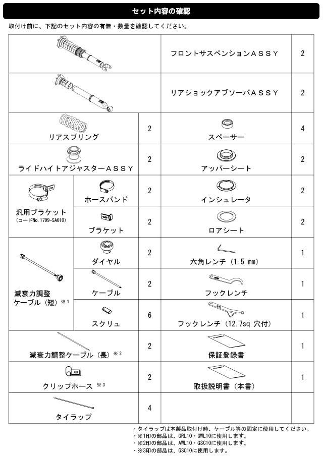 なお、出荷時車高から極端に車高を下げて使用することによるダンパーオイル漏れ等の不具合に関しても保証対象外となりますので、御注意ください。)