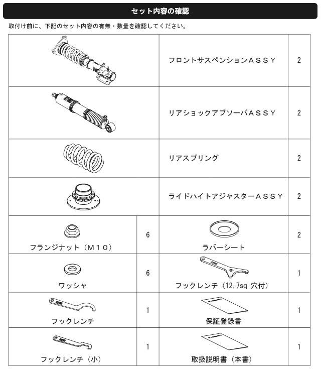 なお、出荷時車高から極端に車高を下げて使用することによるダンパーオイル漏れ等の不具合に関しても保証対象外となりますので、御注意ください。)