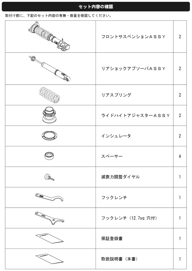 なお、出荷時車高から極端に車高を下げて使用することによるダンパーオイル漏れ等の不具合に関しても保証対象外となりますので、御注意ください。)