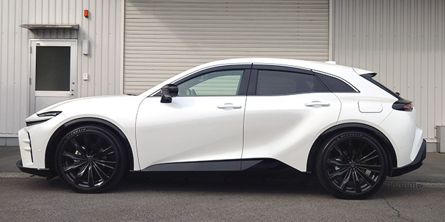 21インチ大径ホイールを履きこなしノーマルでもスタイリッシュな見た目ですが、SUVということもありノーマルでは高めの車高セッティングのクラウンスポーツをローダウンすることで、どこかスポーツワゴンのようなより引き締まった見た目にすることが可能です。