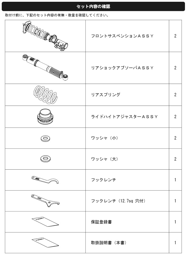 なお、出荷時車高から極端に車高を下げて使用することによるダンパーオイル漏れ等の不具合に関しても保証対象外となりますので、御注意ください。)