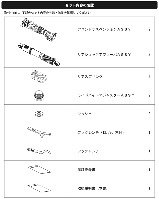 なお、出荷時車高から極端に車高を下げて使用することによるダンパーオイル漏れ等の不具合に関しても保証対象外となりますので、御注意ください。)