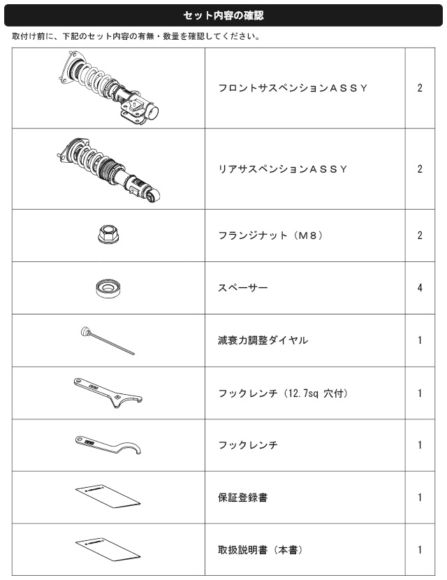 なお、出荷時車高から極端に車高を下げて使用することによるダンパーオイル漏れ等の不具合に関しても保証対象外となりますので、御注意ください。)
