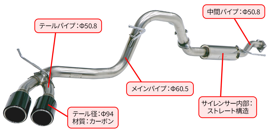 | 中間パイプ径 | 50.8 → 60.5 → 50.8 × 2 (※1) | |