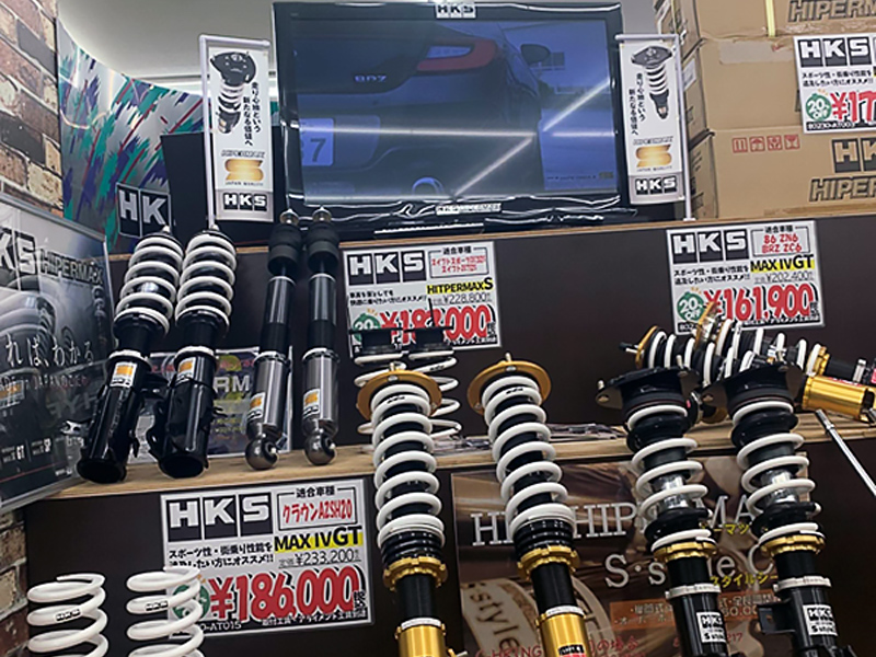 HKS車高調の事ならお任せ下さい。数多くの商品を取り揃え、経験豊富なスタッフがお客様のカーライフを応援致します。