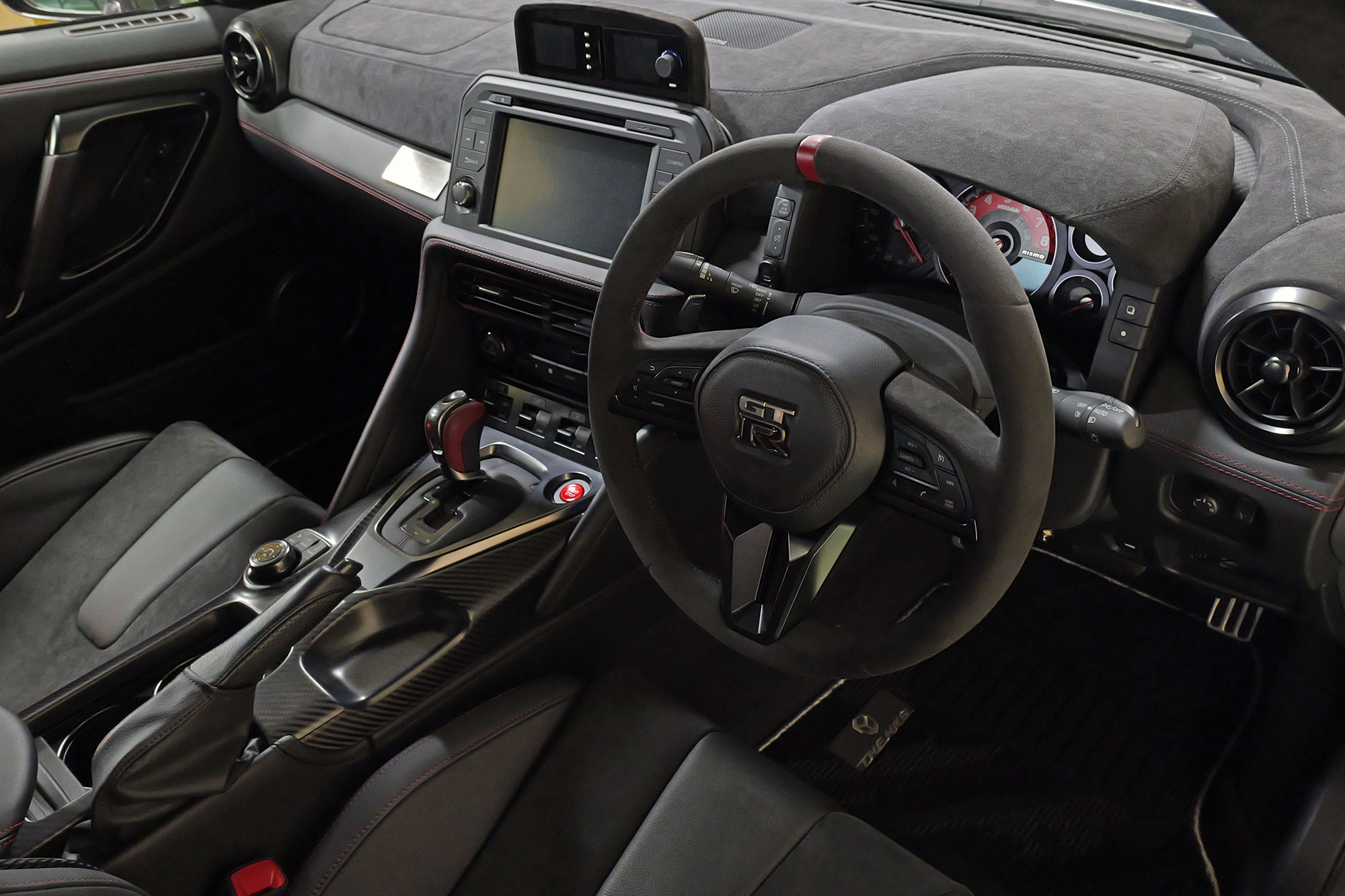 NISMOシートとHKS 50th RACING HARNESS、THE HKS専用インテリアが与えられたコクピットは、フラッグシップにふさわしい緊張感と上質さを備える。THE HKS GT-R R35 MY24 NISMO Dimension Zは、GT-Rチューニングの頂点であると同時に、現代におけるHKSハイパーカーの定義そのものである。